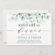 Este convite de janto de ensaio apresenta cores aquáticas pintadas de eucalipto, verde botânico e folhas azuis-claras com caligrafia moderna. Para personalização mais avançada deste design, clique no link "Personalizar mais".