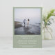 Este ensaio de casamento verde de na moda é um convite para janto de ensaio e ensaio moderno, chique e minimalista. Apresenta uma fotografia do casal com texto subestimado que contém todas as informações relevantes. Simples, bonito e elegante.
