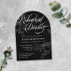 Um convite para jantar o ensaio de casamento de góticos elegantes com uma combinação de fontes clássicas elegantes e um roteiro de ornamentado com muitas espirais contra um fundo negro com crânios de cinza escura. Convide seus convidados de casamento para o janto de ensaio com estes convites para góticos do crânio negro.
