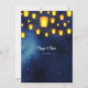 Um cheio noturno estrelado de ouro iluminado, lanternas flutuantes, define a cena de um belo top-off para uma celebração neste convite de janto de ensaio único. Faz uma impressionante impressão para o seu casamento, casamento só de recepção, janto de ensaio, comemoração de Diwali, aniversário, chá de panela, chá de casal ou festa de aniversário. Disponível com produtos correspondentes.