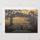 Este belo convite de janto de ensaio apresenta um design de outono rústico com uma árvore sem folhas coberta por cordas de luz sobre um fundo falso de pergaminho. Os tons quentes de marrom ouro o tornam perfeito para uma cerimônia de outono. Ele tem informações sobre o ensaio de casamento, assim como sobre o janto comemorativo que se segue. Perfeito por manter a noiva informada sobre todas as festividades pré-casamento.