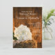 Convide convidados com a charmosa Hydrangea Branca e o convite para Janto de ensaio de casamentos de madeira do Barn. Inpo perfeito ou ideia para um evento temático no estilo ranch ou no celeiro, este convite personalizado informal e elegante apresenta uma fotografia floral fina de um flor branco de hydrangea florssom e um lenço vintage aparado de linen handkerhead em um fardo de feno com um fundo de madeira marrom e intacta. Disponível como um convite impresso para envio por correio ou como um download digital para fácil compartilhamento digital online.