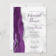 A borda esquerda deste elegante convite para ensaio de casamento moderno apresenta uma cor-d-água roxa com borda de cinza prateada. O texto personalizável combina um script de escrita manual roxo escuro com fontes em preto e em itálico em uma cinza e fundo de mármore branco. O verso apresenta um design de agata prateado e roxo correspondente.