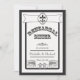 Jazz no seu pecador de ensaio de casamento com os convites para Janto de ensaio de casamento de Nova Orleans. A frente dos convites apresenta um design de estilo vintage divertido com um símbolo Fleur de Lis em uma faixa, as palavras Ensaios Jantam em uma fonte estilizada, e desenhos desenhados à mão em francês Quarter e shotgun na parte inferior. Mostrado aqui em preto e branco. Personalize com suas informações de participante usando o modelo. Clique em Personalizar para fazer alterações na fonte e no posicionamento do texto.