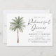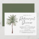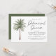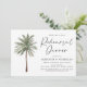 Os convites de janto de ensaio de casamento tropical com uma ilustração de palmeira de solteiro mostrada no lado esquerdo da design. Personalize o janto de ensaio da palmeira com seus nomes e ensaie detalhes do janto em letras negras com um moderno texto escrito à mão destacando o design. O simples janto de ensaios tropicais convida a reversão para mostrar um fundo verde sólido. Projetado para coordenar com a nossa coleção de casamento da Palm Tree Minimal.
