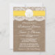 Estes convites de janto de teste de casamento de areia amarela rústica em praia de dólar farão o anúncio perfeito para qualquer casamento pelo mar! A design apresenta um adorável fundo de efeito de burvolta rústica com uma trim romântica de efeito de renda branca vintage acabada com um espantoso efeito de areia e dólar e fita amarela. Esses convites podem ser personalizados para sua ocasião especial e farão o anúncio perfeito para qualquer casamento na praia, chá de panela, festa de noivado, festa de aniversário e muito, muito mais. Por favor, note que Zazzle só vende convites impressos para que esses convites não tenham nenhum material real de burlap, renda, dólar de areia ou fita.