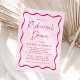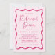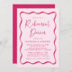 Convide convidados para o seu janto de ensaio em estilo com os nossos convites para janto de ensaio de casamento do Modern Pink Wavy Frame. O design apresenta as palavras "Janto de ensaio" apresentadas num script rosa manuscrito em contraste com um fundo de rosa claro. Os detalhes do seu janto de ensaio estão cercados por uma borda ondulada rosa. Este convite à janta de ensaios retrorreflectores é perfeito para usar em jantadas de ensaio casuais e modernas.