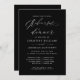 Convide seus convidados de janto de ensaio de casamento em estilo com este convite de casamento minimalista personalizado preto e branco com um simples fundo preto com tipografia elegante de roteiro branco para personalizar com seus detalhes de casamento. Os melhores votos para o seu casamento e casamento! Desenhada por Susan Coffey.