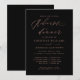 Convide seus convidados de janto de ensaio de casamento em estilo com este convite de casamento personalizado de tipografia negra e rosa-ouro minimalista com um simples fundo negro com elegante caligrafia de rosa de ouro falso para personalizar com seus detalhes de casamento. Os melhores votos para o seu casamento e casamento! Desenhada por Susan Coffey.