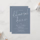 Janto de Ensaio de Casamento de Script Moderno Dusty Blue. Disponível digitalmente e impresso. Este design tipográfico tem um elegante script de conjunto informal para o Janto de ensaio e o resto do texto que você pode personalizar facilmente. Você também pode alterar as cores do texto e do plano de fundo em ambos os lados, se desejar através da opção Personalizar mais.
