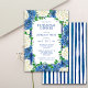 Convide seus hóspedes com estilo usando este elegante convite de ensaio para casamento. Nosso Janto de Ensaio de Casamento de Stripes Azuis Hidrangeas contém lindas hífenes azuis e brancas, verde exuberante e listras azuis clássicas. A mistura harmoniosa de beleza floral e design de eterno capta o romance e a sofisticação do seu dia especial. Prepare-se para ser varrido pela beleza deste convite de casamento de ensaio floral, que dá o tom perfeito para uma celebração inesquecível.
