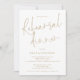 Convite para Janto de Ensaio de Casamento Dourado Elegante. Mostrado em ouro clássico e branco. Este design moderno tem elegante roteiro informal para Janto de ensaio e o resto da tipografia que você pode personalizar facilmente. Você também pode alterar as cores do texto e do plano de fundo em ambos os lados, se desejar através da opção Personalizar mais.