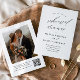 Convite para Janto de ensaio de casamento de fotos elegante, com detalhes elegantes de caligrafia e texto clássico. A parte traseira tem uma foto e detalhes de RSVP com o Código QR. Clique no botão editar para personalizar este design.
