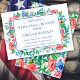 Procurando um convite para janto de ensaio de casamento patriótico no dia 4 de julho? Veja o nosso Janto de ensaio de casamento azul vermelho 4 de julho. Este convite de janto de ensaio de 4 de julho apresenta belas florais de cor vermelha e azul com bandeira americana. Este convite para o ensaio de casamento é lindo para um casamento no Dia da Independência. Você pode personalizar o texto.