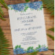 Hydrangeas Azuis, Janto Elegante de Ensaio de Casamento Convite é uma bela aquarela com hífenes azuis e verde. Perfeito para um casamento de Primavera / Verão. Você pode personalizar selecionando "Personalizar este modelo" ou, se quiser personalizar este design ainda mais, selecione "Editar usando a ferramenta Design". Se precisar de itens correspondentes, entre em contato comigo.