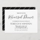 Este convite de janto de ensaio de casamento apresenta um simples design preto-e-branco, acentuado com o texto manuscrito na moda. A parte de trás é preta com um padrão diagonal de faixa branca.
