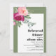 Este sofisticado convite de janto de ensaio de casamento apresenta uma fronteira branca adornada com um adorável arranjo de galhos de eucalipto, verde-luxuoso e delicadas flores de rosa-rosa rosa no canto superior esquerdo. O texto aparece elegantemente em tipografia ousada, chamando a atenção para os detalhes importantes do evento. Ao redor do texto estão charmosas bordas verdes sábias que acrescentam um toque de frescura e estilo ao design geral.