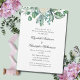 Um belo convite clássico de janto de ensaio de casamento tradicional. Criado com uma rosa branca e um design floral botânico de eucalipto. Muito elegante. Todos os campos são editáveis para o seu ensaio de casamento único.