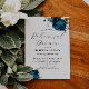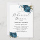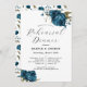Elegante convite de janto de ensaio de casamento com ilustração aquosa de flores de pénia azul marinho com verde. Perfeito para o seu casamento outono.
