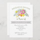 O folclore floresce rosa, moderno convite para o ensaio de casamento floral, com flores bonito do estilo vintage, em rosa e amarelo, com folhas verdes, uma faixa de cinza e texto curvado com uma letra caprichosa que se parece com a letra manuscrita. Este modelo de novo e moderno faz parte de um casamento e é completamente personalizável. Perfeito para uma primavera de campo rústica ou casamento de verão.