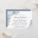 Este belo convite de janto de ensaio é rústico e elegante. Apresenta uma design de aquarela pintada manualmente com rosas, flores e jardim verde em tons de azul empoeirado e verde-sábio. Ele tem informações sobre o ensaio de casamento, assim como sobre o janto comemorativo que se segue. Perfeito por manter a noiva informada sobre todas as festividades pré-casamento.