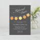 O convite de janto do ensaio de casamento moderno mostra um céu noturno com uma vibrante lanterna de papel pendurada. Fundo negro de carvão com cinzas leves, amarelo cítrico e cor laranja.