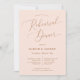Mínimo convite de janto de ensaio de casamento com fontes modernas de escrita num fundo cor-de-rosa. Este modelo já tem textos que contêm todas as informações necessárias para o seu evento. Os textos são facilmente personalizáveis on-line.