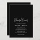 O convite jante de ensaio preto moderno, com um simples design com o título do evento numa tipografia elegante de escrita, e os detalhes do seu evento numa letra de sans serif minimalista. Este convite de janto de ensaio chic funciona bem com qualquer estilo de casamento.