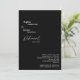 Este janto clássico de ensaio de casamento negro é perfeito para o seu elegante casamento moderno. Esta design apresenta uma caligrafia simples branca, colocada sobre um fundo preto escuro para corresponder ao seu casamento clássico tradicional ou ao casamento de boho minimalista no primavera, verão, outono ou inverno. Por favor, sinta-se à vontade para nos contactar com quaisquer perguntas sobre esta design.