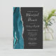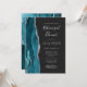A borda esquerda deste elegante convite para ensaio de casamento moderno apresenta uma cor azul lacrimogênea cortada com falso brilho prateado. O texto personalizável combina a escrita manual de cinzas prateadas, fontes copperplate e itálico em um fundo fora do preto. O verso apresenta um design de cor azul e agata prateado correspondentes.