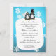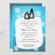Boa noiva Penquin e noiva com flocos de neve convite em azul para o seu ensaio de casamento no inverno. Personalize o texto para atender às suas necessidades.