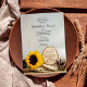Convide convidados para a sua festa com o convite para Janto de ensaio russo de casamento de girassol. Este janto informal, porém elegante, costume ao ar livre ou floresta no início do ensaio de casamentos apresenta uma fotografia típica de uma flor de girassol amarela, um véu branco, fatias de madeira com a palavra AMOR e dois cones de pinheiro castanho com uma pincel e fundo branco de cebola.