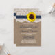 Este girassol rústico em burlap e janto de ensaio de casamento de rendas fará o anúncio perfeito para qualquer noiva e noivo ser! A design apresenta um girassol adorável com fita azul marinho sobre um fundo de efeito de burvolta rústico com uma trim romântica de efeito de renda branca vintage. Esses convites podem ser personalizados para sua ocasião especial e farão o anúncio perfeito para qualquer casamento na praia, chá de panela, festa de noivado, festa de aniversário e muito, muito mais. Por favor, note que Zazzle só vende convites impressos para que esses convites não tenham nenhum material de girassol, fita, burlap ou rendas.