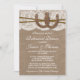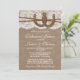 Essa ferradura rústica em burlap e em janto de ensaio de casamento de rendas fará o anúncio perfeito para qualquer noiva e noivo ser! A design apresenta lindas ferraduras entrelaçadas com fio em um fundo de efeito de burlap com efeito romântico com efeito de renda branca de vintage. Esses convites podem ser personalizados para sua ocasião especial e farão o anúncio perfeito para qualquer casamento rústico, chá de panela, festa de noivado, festa de aniversário e muito, muito mais. Por favor, note que Zazzle só vende convites impressos para que estes convites não tenham verdadeiros materiais de ferradura, fio, arromba ou rendas.