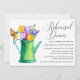 Os convites de ensaio de estilo rústico da tendência, com água potável, podem cheio tulipas e flores e um padrão listrado branco e amarelo no verso do cartão. Estes convites são perfeitos para um país, uma fazenda, uma festa de jardim, um quintal ou um chá de casamento de estilo.