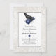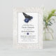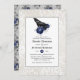 O convite do janto de ensaio de casamento gótico, com um rajado e um fundo de renda com um padrão marinho azul de harlequin invertido.