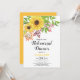 Este convite de janto de ensaio de casamento foi feito para capturar a essência de um primavera ou casamento outono delicioso. Mostra um adorável buquê amarelo de girassóis com folhas verdes, o que adiciona um toque de vibração e beleza natural à design geral. O convite inclui também folhas e bagas de outono, que complementam perfeitamente os girassóis de cor amarela. O verso do convite é enfeitado com uma cor amarela sólida, criando um olhar coeso e visualmente atraente. Este convite é para dar o tom de um janto de ensaio memorável que celebra o amor e a natureza.