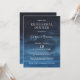 Convite jantado para ensaio moderno e masculino, com um simples design com o título do evento em letras brancas grandes em letra serif e os seus nomes em letra manuscrita sobre uma lavagem de cor azul-d-água azul-marinho escura. A cor azul marinho faz este excelente de convite para uma comemoração sangrenta do inverno.