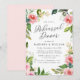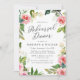 Os convites de ensaio floral elegantes jantam uma borda de flores cor-de-água rosa e pinceladas com folhas verdes vívidas. A frase "Janto de ensaio" aparece num script de caligrafia moderno com os detalhes do janto apresentados abaixo. O convite se reverte para um fundo cor-de-rosa pincelado. Projetado para coordenar com a nossa coleção de casamento Floral Suave Rosa.