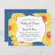 Este convite de janto de ensaio mostra fotos bonitas de margaridas amarelas sobre fundo azul escuro. Um quadro branco de espiral no centro tem texto personalizável para inserir as informações do convite. A cor de fundo pode ser alterada escolhendo o botão personalizar e editar.