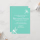 Belo cartão de convite para janto de ensaio de casamento, com duas silhuetas brancas de libélula, em cor de fundo. Personalize o texto com os detalhes do evento.
