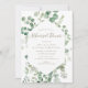 Folhas adoráveis de eucalipto com roteiro elegante. Você pode personalizar o texto, o tamanho do texto, as cores e a fonte neste convite de casamento.