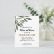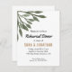Este convite de janto de ensaio de casamento apresenta folhas verdes de sage em aquarela no canto superior esquerdo. Os nomes da noiva e do noivo aparecem numa cor castanho claro. Esta design é perfeita para um cheio de casamento externo de beleza natural.
