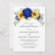 O convite jante para o ensaio de casamento elegante e moderno do país rústico apresenta girassol amarelo vivo, péonias azuis reais, hálito de bebê, estrutura floral de girófilos/coroa com folhas de eucalipto. Por favor, encontre mais designs e variações na minha loja de "blisswedingpaperie". E fique à vontade para me contactar para mais personalizações ou itens correspondentes.