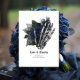 Cujo vintage ventricular de casamentos góticos de crânio floral janta convite em sotaque de marinho e preto personalizável para suas especificidades de evento.