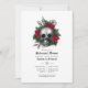Vintage ventricular de casamentos góticos de crânio floral convite jantado em sotaques de vermelho e preto personalizáveis para suas especificidades de evento.