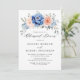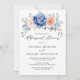 janto de ensaio de casamento floral cor-de-rosa-pincel azul marinho Convite com buquê elegante de azul marinho, azul real, branco, rosa de jardim azul esbranquiçado, hydrangea e folhas verdes de eucalipto sábio. Entre em contato comigo para obter ajuda sobre a personalização ou se você precisar de outro produto com este design.
