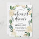 Convite de janto para ensaio elegante e caprichoso, com padrão floral de aquarelas com acentos falsos de folha de ouro e brilho de ouro - não há folha de ouro ou brilho. O convite para a coroa floral é perfeito para o janto de ensaio de primavera.