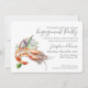 Um conjunto de lagostas ferve convites para festa de noivado para a sua próxima festa ou churrasco relacionado a frutos do mar. Esses convites contêm um texto preto simples, juntamente com uma ilustração exclusiva de pesca de lagostim centrada na parte superior. No verso do convite está um pano de fundo azul listrado do Oceano. Todos os elementos deste convite são ajustáveis usando a função personalizar.