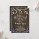 Janto de ensaio russo Convite com padrão de madeira marrom-escura e luzes de fadas de cordas. Possui frascos e lavandas. Perfeito para uma festa de estilo rústico. Envie-me uma mensagem se precisar de mais personalização.